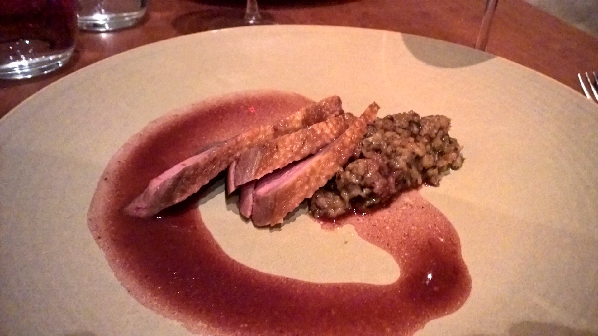 The kicker for me was mains. I opted for the lamb double…sweatbreads for entre and belly/rump for main. So why were both served on a bed of broad beans and spring peas with a jus. And that splodge of blended black garlic. It all felt a little same, same. Lacking a little imagination?